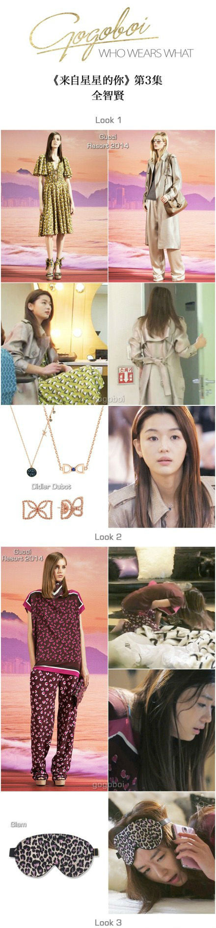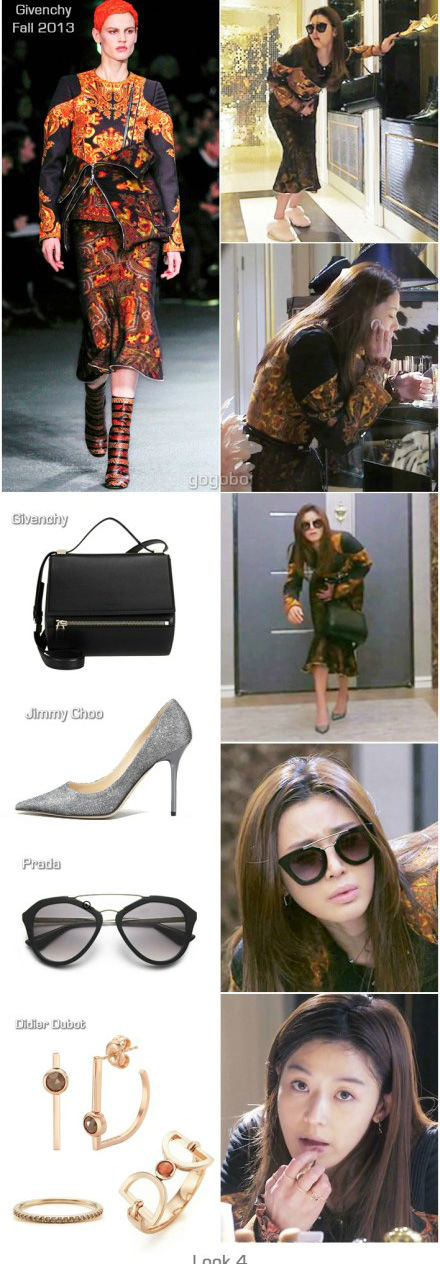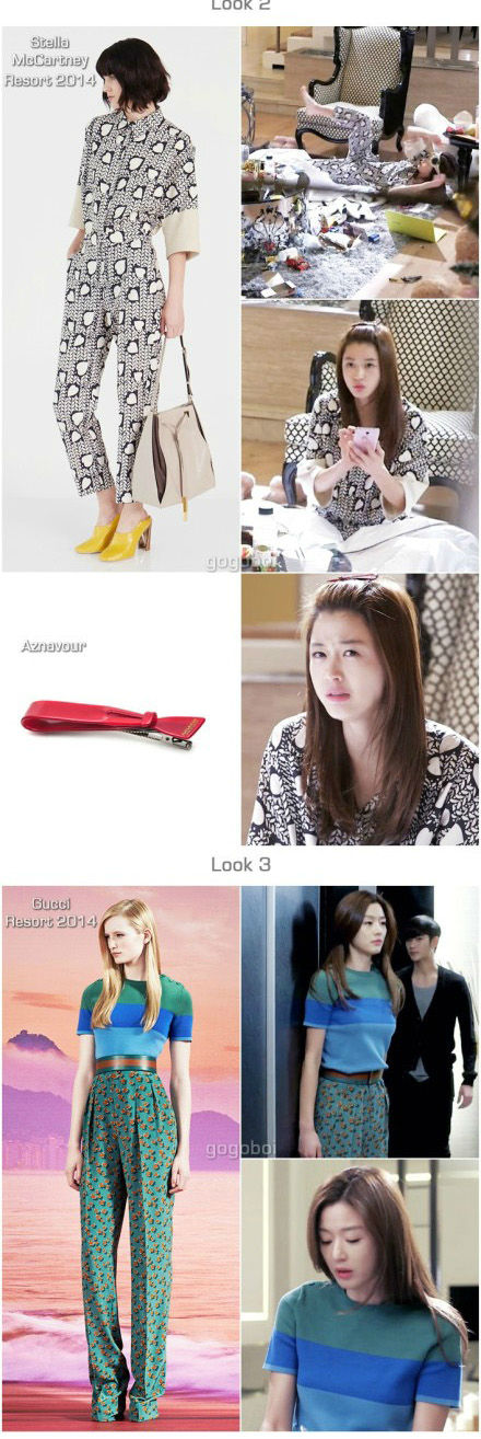 第三集千頌伊展示了她是如何用生命在時髦的:在家生病時穿Gucci度假裝;出門看病時穿Givenchy印花裝;病愈出院時穿DKNY亮色大衣……就像她自己說的:“我不是穿大眾品牌的隨意女子?!碑斎?,美容室撕B時那套Chanel最迷人,穿個得像淑女,說話像個賤人,真是大快人心。